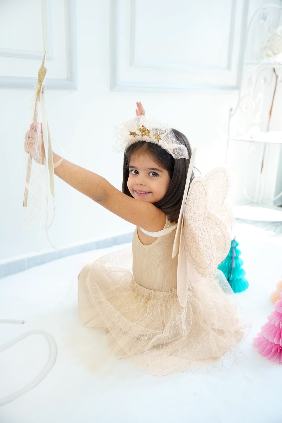 • Aksesuarlar: Taç ve asa ile tam prenses/ peri görünümü